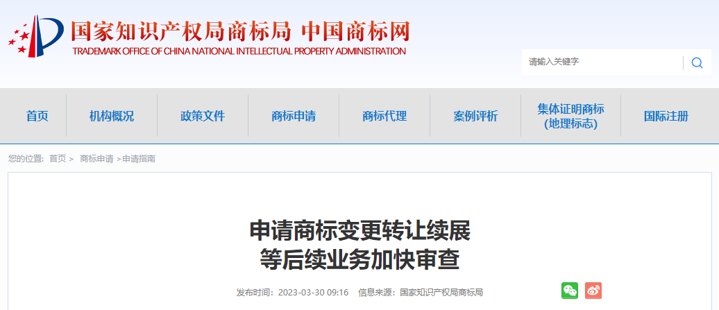 為進一步滿足市場主體生產(chǎn)經(jīng)營所需,服務(wù)經(jīng)濟社會高質(zhì)量發(fā)展,就申請人辦理商標變更轉(zhuǎn)讓續(xù)展等后續(xù)業(yè)務(wù)加快審查申請事宜說明如下: