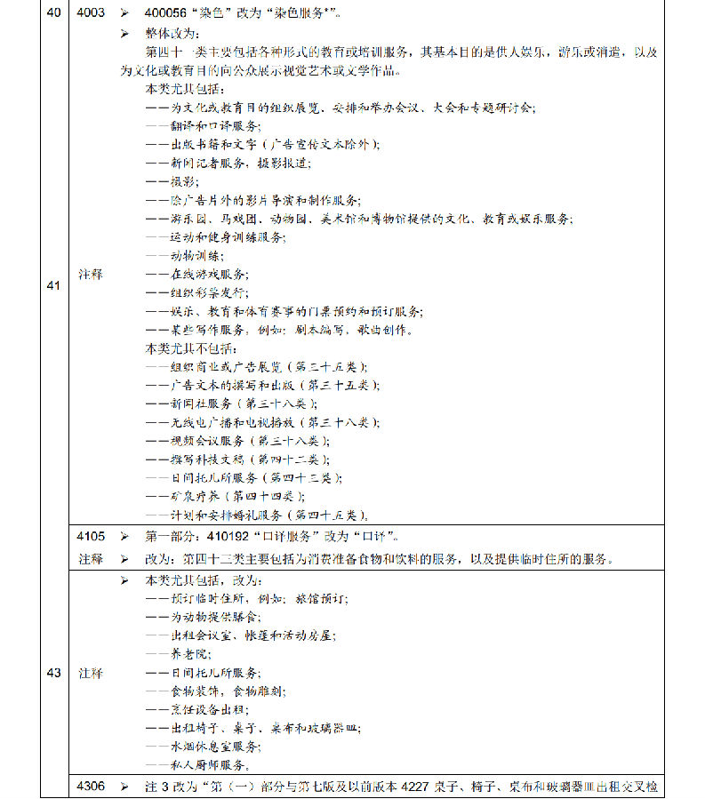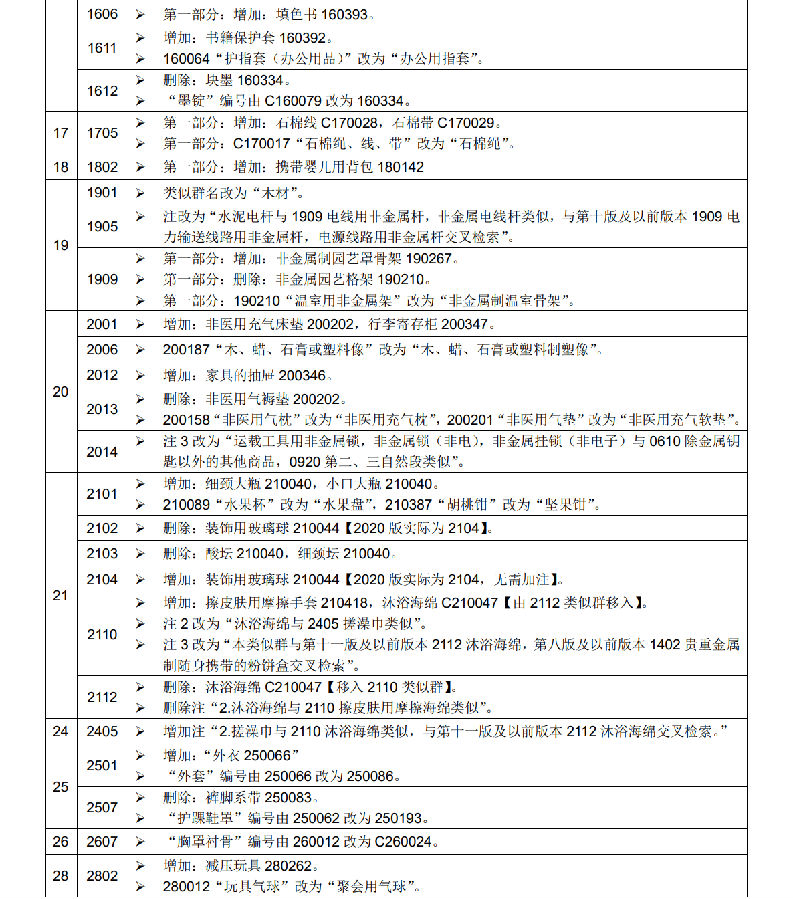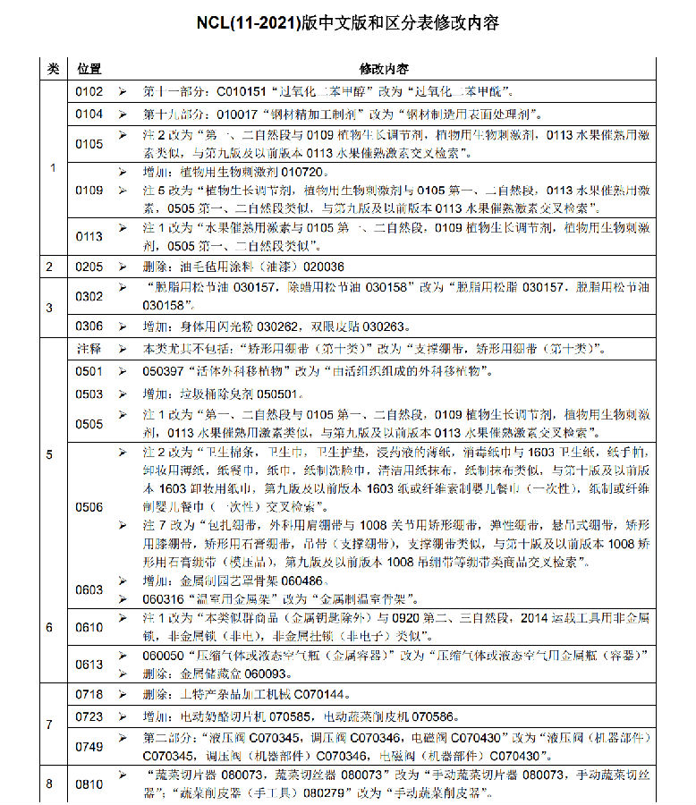 申請日為2021年1月1日及以后的商標(biāo)注冊申請,在進(jìn)行商品服務(wù)項目分類時適用尼斯分類新版本,申請日在此之前的商標(biāo)注冊申請適用尼斯分類原版本。以尼斯分類為基礎(chǔ),我局對《類似商品和服務(wù)區(qū)分表》作了相應(yīng)調(diào)整,現(xiàn)將尼斯分類與《類似商品和服務(wù)區(qū)分表》的修改內(nèi)容一并予以公布。