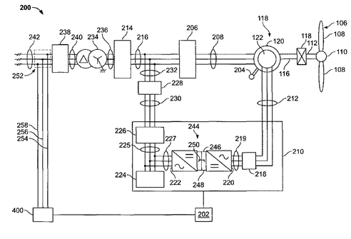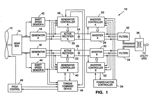 039專利于1992年1月獲得授權(quán),名稱為:“變速風(fēng)力渦輪機(jī)(Variable Speed Wind Turbine)”,是風(fēng)力渦輪機(jī)變速技術(shù)的開創(chuàng)性專利。該專利使得渦輪機(jī)能夠?qū)⒉煌俣鹊娘L(fēng)轉(zhuǎn)換成適于輸送到公共電網(wǎng)的能量。相比以前的固定速度的系統(tǒng),該變速風(fēng)力渦輪機(jī)能夠從風(fēng)中提取更多的能量,并且能夠降低來自傳動(dòng)系統(tǒng)上的轉(zhuǎn)矩的壓力,以延長渦輪機(jī)的壽命。