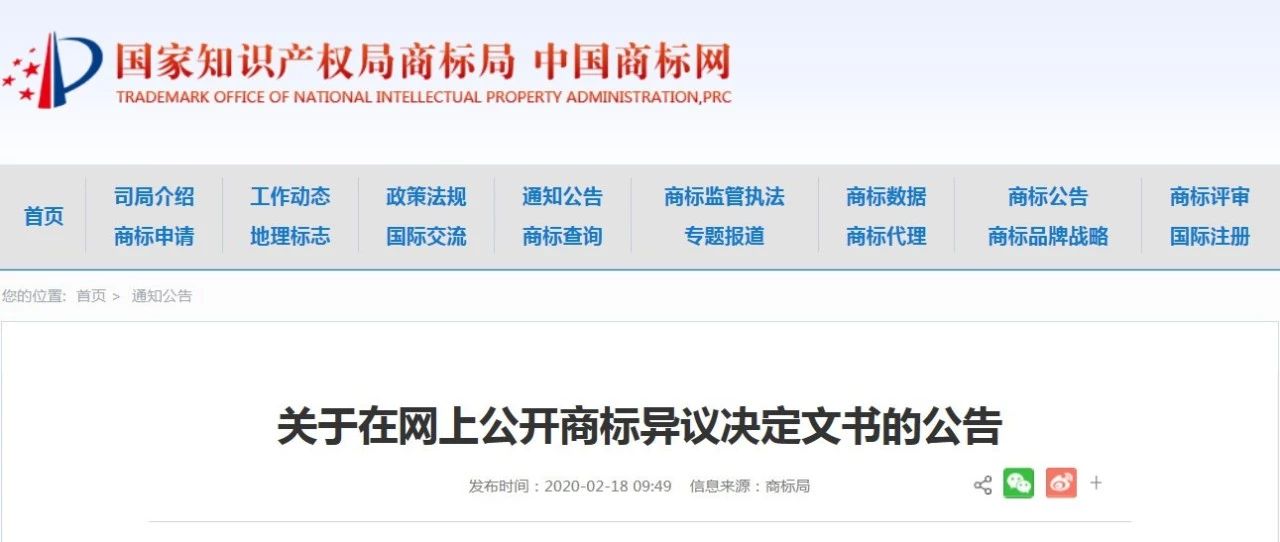 關(guān)注!國(guó)知局商標(biāo)局發(fā)布關(guān)于在網(wǎng)上公開(kāi)商標(biāo)異議決定文書(shū)的公告