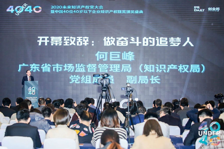 2020年12月25日,2020未來(lái)知識(shí)產(chǎn)權(quán)官大會(huì)暨中國(guó)40位40歲以下企業(yè)知識(shí)產(chǎn)權(quán)精英頒獎(jiǎng)盛典在廣州舉辦。